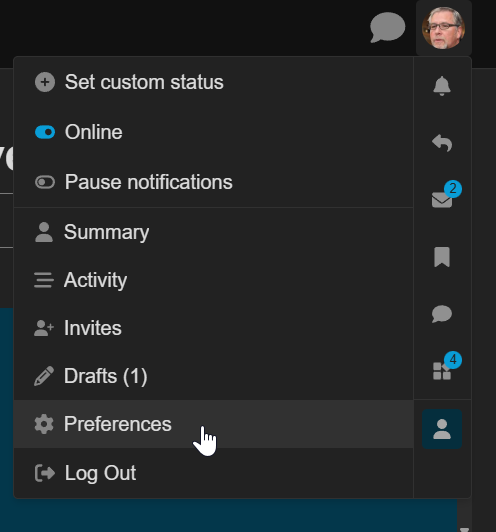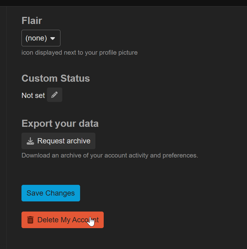To delete your Team 84 Official account click your profile icon at the top right, click the "profile" icon, and "preferences"